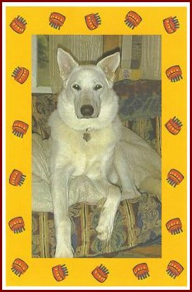 We had a lot of really big rain in October - November, but Beckley is not bothered by it, on a few of the big rain days ( one we got 5" and a week later we got 10" with rain every day inbetween and a lot of rain on the days before and after!) all the dogs woke up and went to the door to go out, mom, dad and Wolfie turned right around and headed back to bed because it was just too wet to go outside, but not Beckley, he said lets go out and get wet Dad! I Think he just loves to be toweled off when he comes back in, which I must say is big guy to dry and at least a 2 towel dog. The day after the 10" of rain the whole canal was covered in floating pumpkins, Beckley and I went to retrive a few of them, which he had to visit and lick everytime we went outside. He is just a charecter!