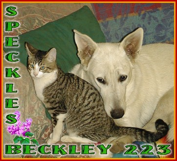 Beckley is trying to figure out how to talk, he always seems to be mouthing words and trying to communicate with me. His other thing he is trying do is to open the door knob with his mouth, he watches us opening the door, since his mouth is at about the height as the knob, we have seen him with the knob in his mouth trying to turn the knob. I think one day he will open the door by himself.