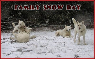 Beckley's first snow, it was love at first site, he and dad played and played they couldn't get enough of the stuff and for a week they had great fun in it. At one point we couldn't find him and he was right in front of us under the snow. When it got warmer it started to rain again and began melting the snow off, Beckley still wanted to be out laying and rolling in the wet sloppy slush. He was just like a little kid.