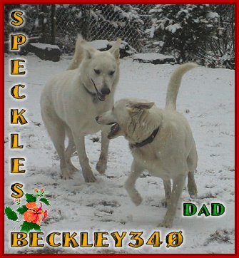 Beckley's first snow, it was love at first site, he and dad played and played they couldn't get enough of the stuff and for a week they had great fun in it. At one point we couldn't find him and he was right in front of us under the snow. When it got warmer it started to rain again and began melting the snow off, Beckley still wanted to be out laying and rolling in the wet sloppy slush. He was just like a little kid.