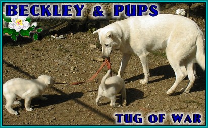 Beckley taught the puppies the things in life like drinking out of the big water bowl and playing tug of war. Beckley was the puppies hero.